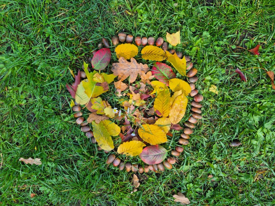 Die Klassen 3a und 4a legen aus Naturmaterialien Kunstwerke.