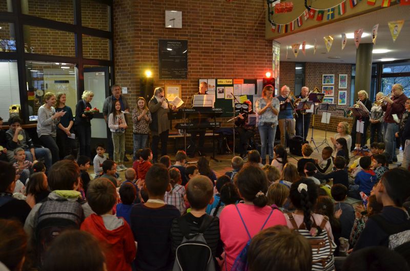 Es ist zu einer Tradition geworden, dass es am Freitag vor dem ersten Advent an unserer Schule einen Aktionstag Advent gibt. Dank der Organisation von Frau Gebhardt und Frau Förschl-Roßkopf fanden an diesem Tag anstelle von Unterricht verschiedene Workshops statt. Diese wurden von Lehrern und vielen freiwilligen, ehrenamtlichen Helfern geleitet. So konnten die Schüler unter anderem Anhänger für unseren großen Weihnachtsbaum basteln, Weihnachtsplätzen backen, Geschichten lauschen, Gestecke aus Zweigen herstellen, Fantasiereisen erleben oder etwas über das Weihnachtsfest in Afrika erfahren.