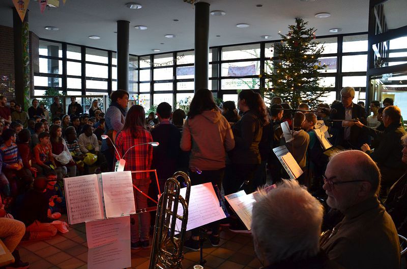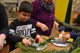Es ist zu einer Tradition geworden, dass es am Freitag vor dem ersten Advent an unserer Schule einen Aktionstag Advent gibt. Dank der Organisation von Frau Gebhardt und Frau Förschl-Roßkopf fanden an diesem Tag anstelle von Unterricht verschiedene Workshops statt. Diese wurden von Lehrern und vielen freiwilligen, ehrenamtlichen Helfern geleitet. So konnten die Schüler unter anderem Anhänger für unseren großen Weihnachtsbaum basteln, Weihnachtsplätzen backen, Geschichten lauschen, Gestecke aus Zweigen herstellen, Fantasiereisen erleben oder etwas über das Weihnachtsfest in Afrika erfahren.