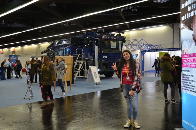Wir waren mit der Schule bei der Berufsbildungsmesse und mussten uns über unsere vorher ausgesuchten Berufe informieren. Man konnte in der Messe verschiedene Sachen ausprobieren. Auch über die Berufe die man zuvor gar noch nicht gekannt hatte. Es gab einen großen Polizei-Wasserwerfer und 2 Helikopter. Einmal einen von der Polizei und einmal von der Bundeswehr. Man konnte sich in die Helikopter setzen und in den Wasserwerfer Außerdem gab es einen Deutsche Bahn Simulator, dort hat man erfahren wie wenn man einen Zug fährt. Dann gab es noch einen Lkw zu fahren mit Gangschaltung und Motor. Man konnte mit einem Simulator durch Ringe fliegen und man konnte einen Bagger fahren. Es war aber auch nur ein Simulator. Wir waren bis 13 Uhr an der Messe, dann sind wir wieder zurückgefahren.
