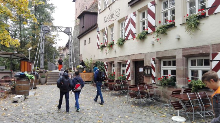 Nach der Gerichtsverhandlung mussten wir auf einem Stadtplan das Untersuchungsgefängnis finden. Es war gar nicht weit weg vom Gerichtsgebäude. Danach sind wir an der Pegnitz entlang gelaufen und haben an einem Spielplatz gemeinsam unsere Antworten auf die Fragen zusammengefasst und kontrolliert. Danach sind wir weiter über den Kettensteg in die Stadt gelaufen und von dort mit der U-Bahn zurück zur Schule gefahren.