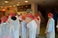 Das Umsteigen von einem Verkehrsmittel zum anderen und die Orientierung im Gewerbegebiet klappten durch die aufmerksamen Schüler richtig gut. So kamen wir überpünktlich an. Als erstes mussten wir einen Mantel und eine Kopfhaube anziehen. Wir erfuhren, dass das aus hygienischen Gründen eine Voraussetzung ist, wenn man den Produktionsbereich von Lebensmitteln betritt. Anschließend konnten wir unsere Fragen stellen. So erfuhren wir beispielsweise etwas über das Alter des Betriebs, die Berufe, die Arbeitszeiten und das Gehalt der Mitarbeiter und die Ausbildung bei „Der Beck“.