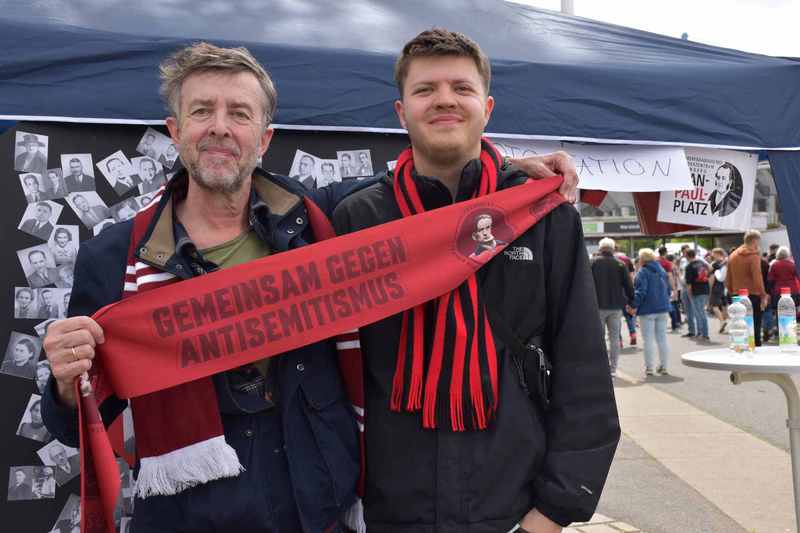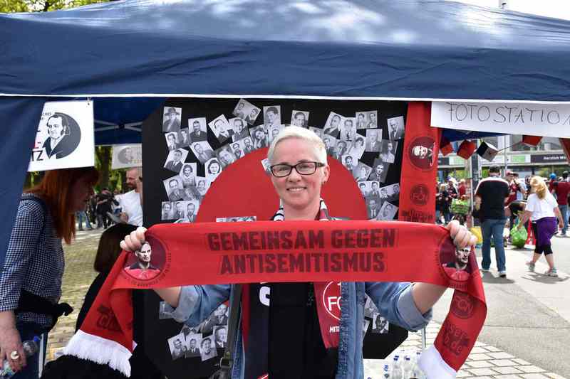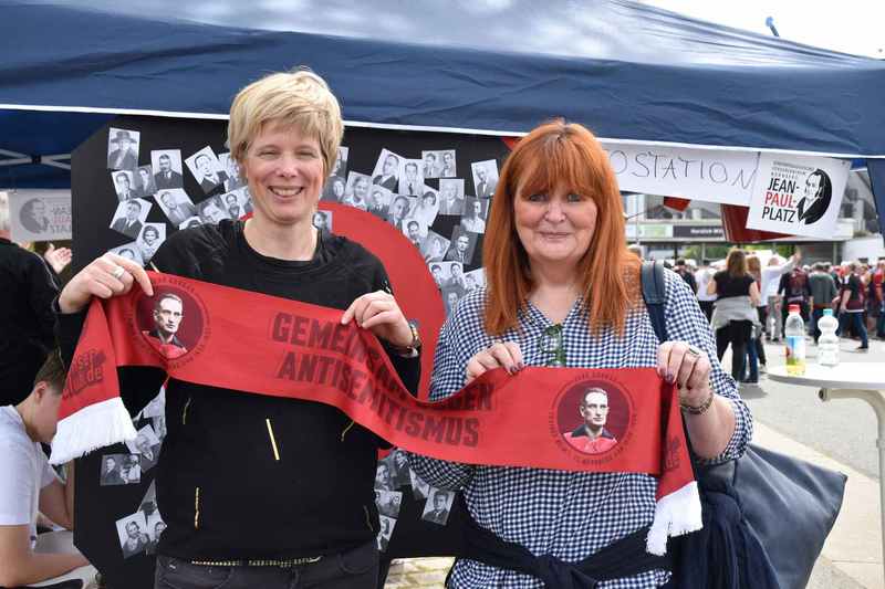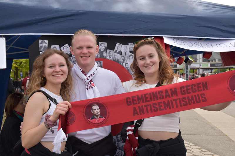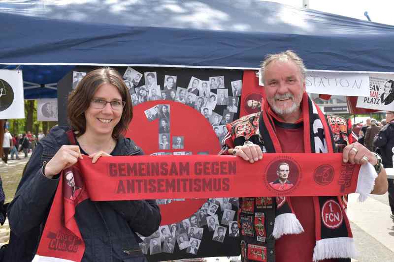 Hierher kamen Familien, einzelne Personen, denen das Thema wichtig ist, Vorstand und Verantwortliche des 1.FCN, viele Clubberer oder Fans des Karlsruher SC, angereiste Schalke – Fans und gleichzeitig Mitglieder einer Initiative gegen Antisemitismus in ihrem Verein, neutrale Fußballfans aus Slowenien und Menschen, die extra dieser Aktion wegen kamen und das Spiel nicht besuchten. Menschen die Vorbilder sind, die keine Angst haben ihr Gesicht gegen rechts zu zeigen. Sie sind Mutmacher für unsere Kinder und Jugendlichen und bestärken uns Lehrkräfte in unserem demokratischen Bemühen an unserer Schule.