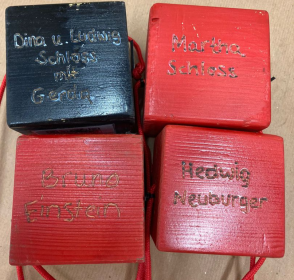 Ein Name auf jedem Würfel, manchmal auch zwei oder drei, denn die Familien wollten wir nicht trennen. Wenigstens hier bleiben sie zusammen. Der QR-Code auf der Oberseite erzählt über das Leben der Menschen, ihre Biografie, ihre Schicksale: