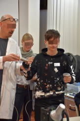 Anschließend haben wir gemeinsam in der Klasse eine „Menschenkette“ gebildet, die es uns ermöglicht hat Musik aus einer Box abzuspielen. Die Kinder aus der Klasse haben sich alle die Hände gegeben. Die erste Schülerin und die letzte Schülerin in der Kette hatten beide eine Metallstange in der Hand, durch die Strom fließt. Anhand der Menschenkette konnte der Strom geleitet werden und die Musik abgespielt werden.