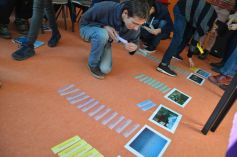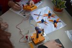 Doch zunächst mussten die Schüler unter Bildern der entsprechenden Möglichkeiten Strom zu erzeugen, Kärtchen mit den Namen der Energieträger legen, um schließlich eine Art Balkendiagramm zu erhalten. So verstanden sie, dass immer noch sehr viel Strom aus atomaren und fossilen Rohstoffen (Gas und Kohle) erzeugt wird. Eine Möglichkeit um davon weniger zu benötigen, ist in erster Linie das Sparen von Strom. Die Schüler lernten aber auch, dass Strom aus Windkrafträdern und Solarparks nicht immer oder manchmal sogar zu viel vorhanden ist und somit auch gespeichert werden muss.