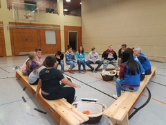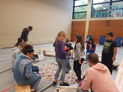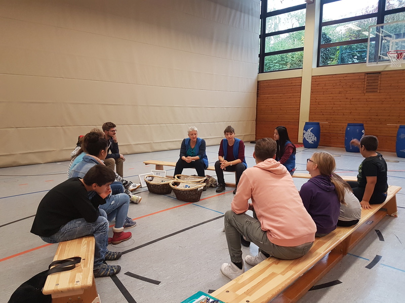 Das Erfahrungsfeld der Sinne „mobiles Erfahrungsfeld“ besuchte den Jean-Paul-Platz. In der Turnhalle wurden Stationen aufgebaut, an denen die Schüler praktische Erfahrungen zum Thema Müll sammeln konnten. Beispielsweise wurden Fische, aber auch Müll geangelt. Der Müll sollte von den Schülern nach Verwesungsdauer sortiert werden.