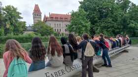 Wir waren bei Faber-Castell mit der Parallelklasse 7b von Herrn Lauerbach, der diesen Ausflug organisiert hat. Dafür sind wir mit zwei Bussen nach Stein gefahren und haben uns angeschaut, wie die Produktion von Stiften funktioniert. Die Produktion hat so begonnen, dass sie Zedernholzplatten genommen haben, Holzleim benutzt und die Minen in die Rillen rein gemacht haben. Dann kam eine zweite Holzplatte oben drauf und sie haben es gepresst. Danach wurden die einzelnen Stifte abgeschnitten, geformt und geschliffen. Als nächstes wurden sie bis zu 15-mal lackiert und getrocknet. Anschließend wurden Stempel aufgedruckt und die Stifte gespitzt. Sie werden entweder im eigenen Laden direkt an der Fabrik verkauft oder von LKWs abgeholt und in andere Läden geschickt.