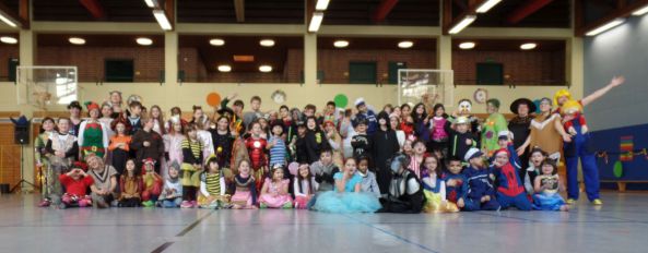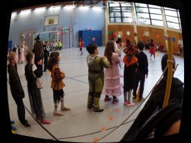 Am 24.2.2017 feierte die DFK-Stufe und die SVE gemeinsam Fasching in der Turnhalle. Mit lustigen Kostümen tanzten, lachten und spielten die Kinder mit ihren Lehrern und Betreuern den ganzen Vormittag. Schokoküsse wurden um die Wette gegessen, es gab eine Hüpfballstaffel und ein Kartoffellauf durfte natürlich auch nicht fehlen! Die Mädchengruppe aus der Ganztagesbetreuung übte für unsere „Kleinen“ einen Tanz ein, und als krönenden Abschluss gab es eine Modenschau, bei der jedes Kind sein Kostüm präsentieren konnte.