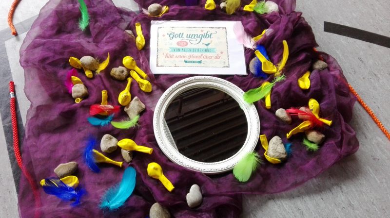 Am Ende kamen alle in der Mitte an und legte ihre Gedanken um einen Spiegel und einen Psalm ab. Psalme spielen sowohl für Juden, Christen und Muslime in ihrer Religion eine wichtige Rolle. Der Psalm 139:5 erinnert uns daran, dass Gott uns von allen Seiten umgibt und seine Hand über uns hält. Wie treffend für ein Schuljahr mit vielen Höhen und vielleicht auch der einen oder anderen Tiefe.