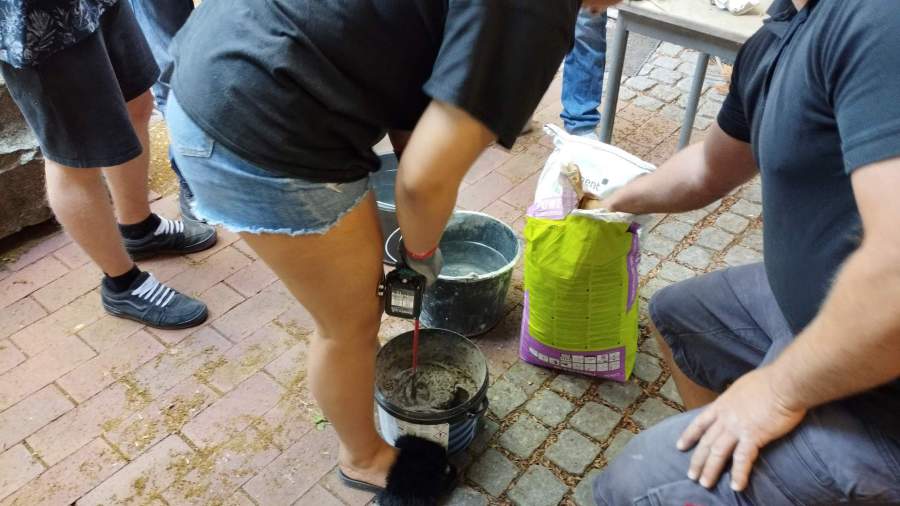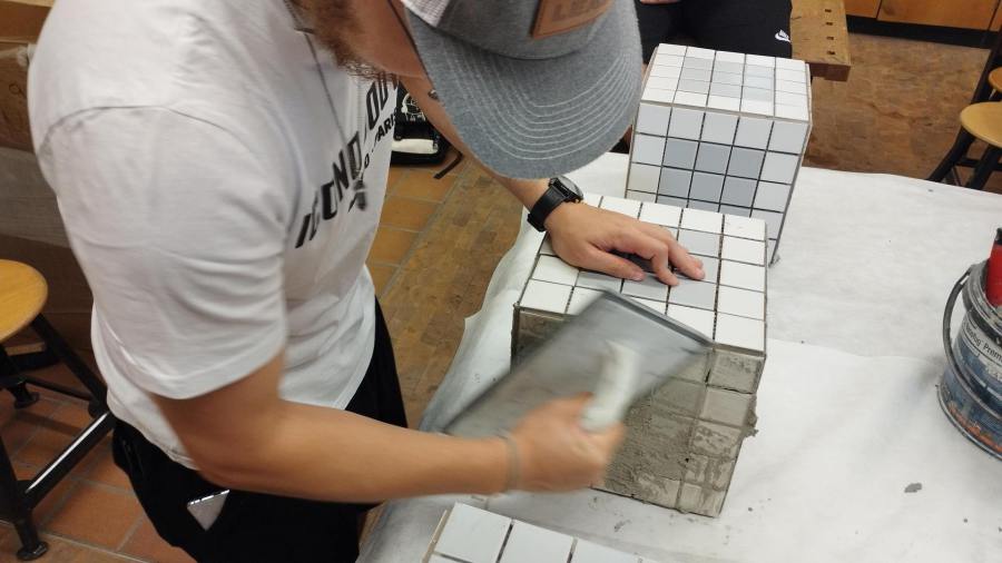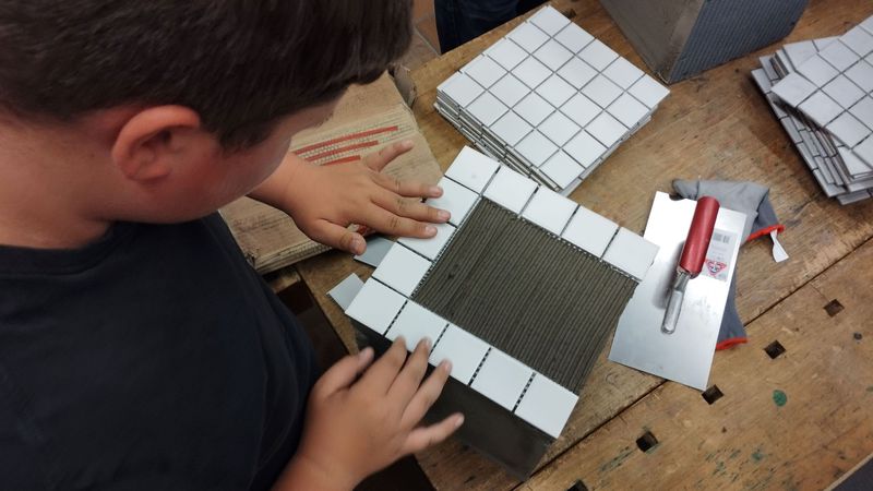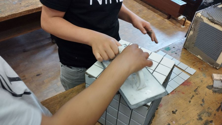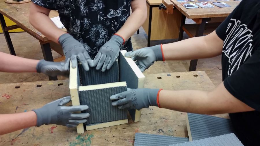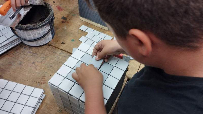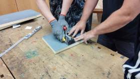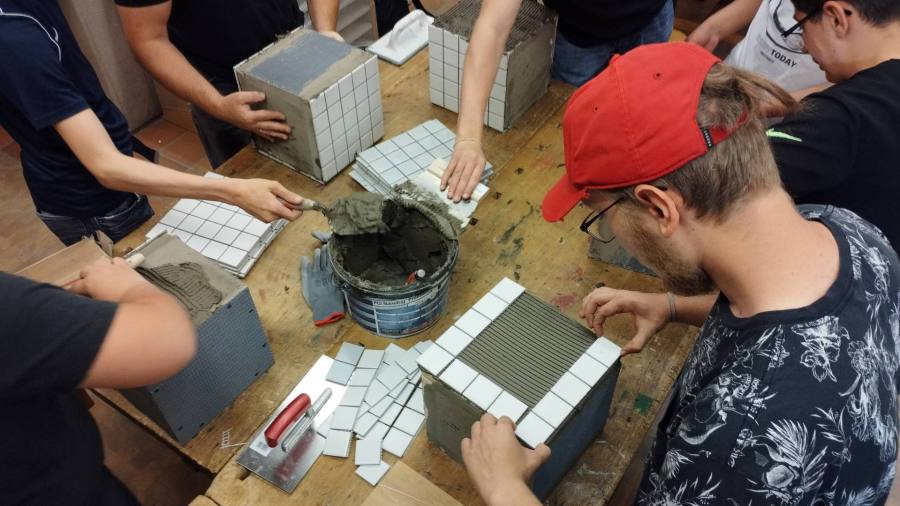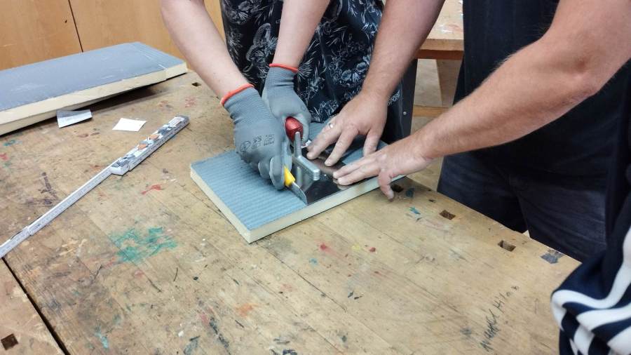 An zwei Schulvormittagen im Juni und Juli besuchte der Fliesenlegermeister Herr Sven Mulzer aus Kornburg den Praxisunterricht in der Oberstufe am SFZ Jean-Paul-Platz. Zunächst klärten Herr Mulzer und die sechs interessierten Schüler aus den beiden 8. Klassen die Tätigkeiten eines Fliesenlegers und die Orte, an denen man überall geflieste Wand- oder Bodenbeläge finden kann.