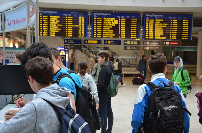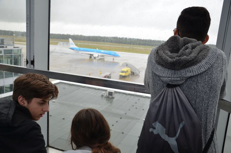 Danach gingen wir zur Flughafen-Besucher-Terrasse. Dort haben wir die stardenden und landenden Flugzeuge beobachtet. Man hat uns gesagt, dass am Tag ungefähr 30 Flugzeuge landen würden. Es sind kleinere, mittlere und große Maschinen gelandet. Es war sehr interessant. Danach sind wir wieder mit der U-Bahn zurück zur Schule gefahren.