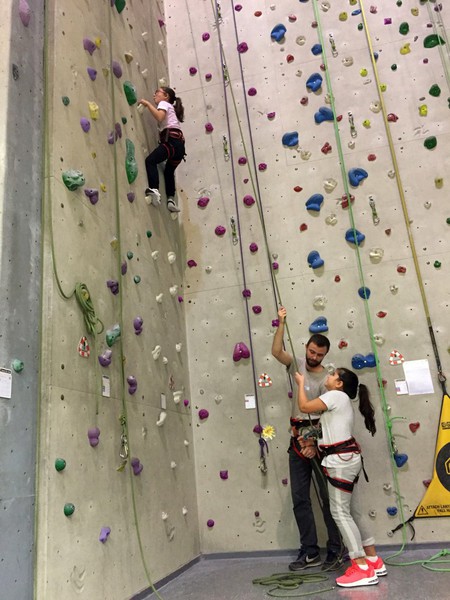Wer wollte, durfte dann an die große Wand wechseln. Diese war 15 Meter hoch! Einige von uns haben es bis ganz nach oben geschafft. Außerdem durften wir uns gegenseitig sichern, was sehr viel Verantwortung bedeutete.