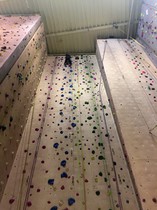 Dann bekam jeder einen Klettergurt und wir durften die erste Route an der kleinen Übungswand klettern. Das war ganz schön anstrengend.