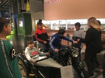 Als wir im Museum waren, sah alles so „modern“ aus. Wir stellten unsere Taschen und Jacken weg. Danach gingen wir in einen Raum voller alter Motorräder. Ich freute mich wie ein Kleinkind, weil mich solche alten Sachen wie Autos, Motorräder etc. sehr interessieren und ich´s cool fand. Wir gingen weiter auf den Weg zum nächsten Raum. Dort sah ich lauter Autos von früher und war einfach begeistert. Als wir im Raum unten waren, standen solche Stationen, wo Herr Käser uns Sachen zum Strom erklärte. Wir durften es anschließend selber ausprobieren. Als wir den Raum verließen, durften wir uns auf ein Motorrad setzen und haben ein sich selbst bewegendes Miniatur-Volksfest gesehen.