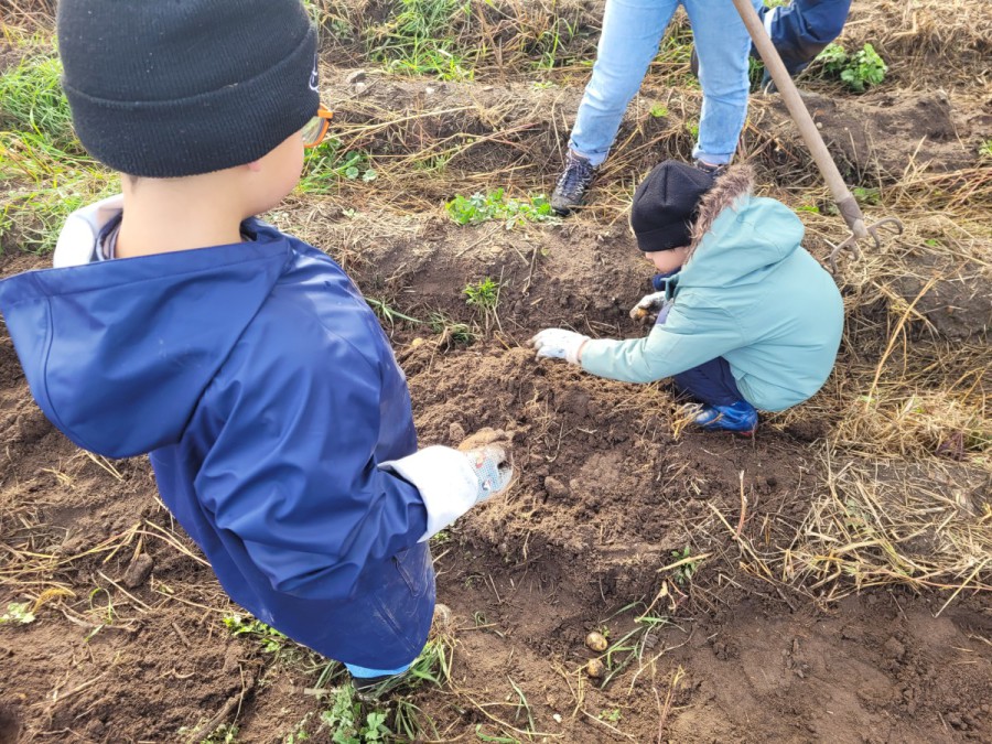 Einen Tag später sind auch die Klassen 1a, 1b und 1Aa zu Frau Vogel gefahren. Dann haben wir auch unsere Kartoffeln bekommen, die wir selber aus der Erde geholt haben.