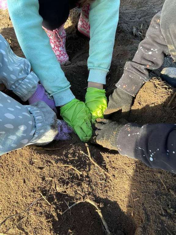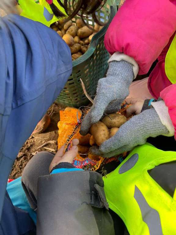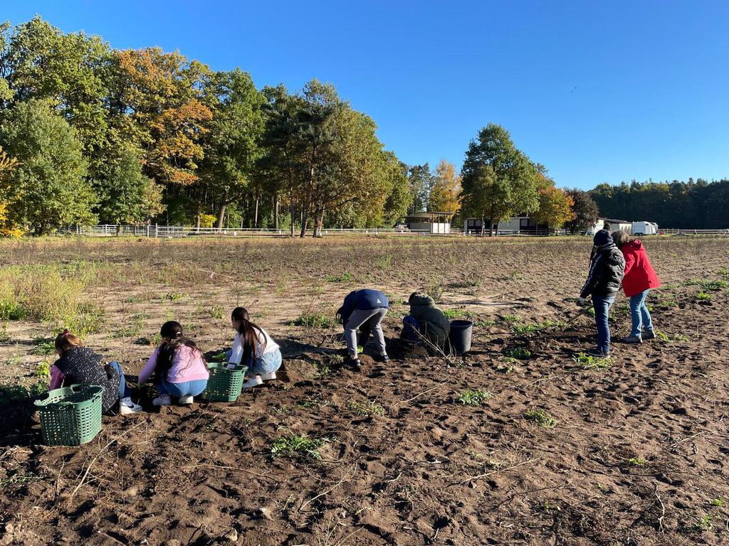 Am 21.10.2025 besuchten die Klassen 1a, 1Aa und 2a den Vogelhof in Greuth. Frau Vogel erklärte uns zunächst etwas über das Wachstum von Kartoffeln und worauf wir bei der Ernte achten müssen.