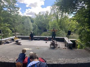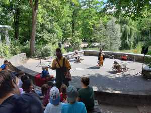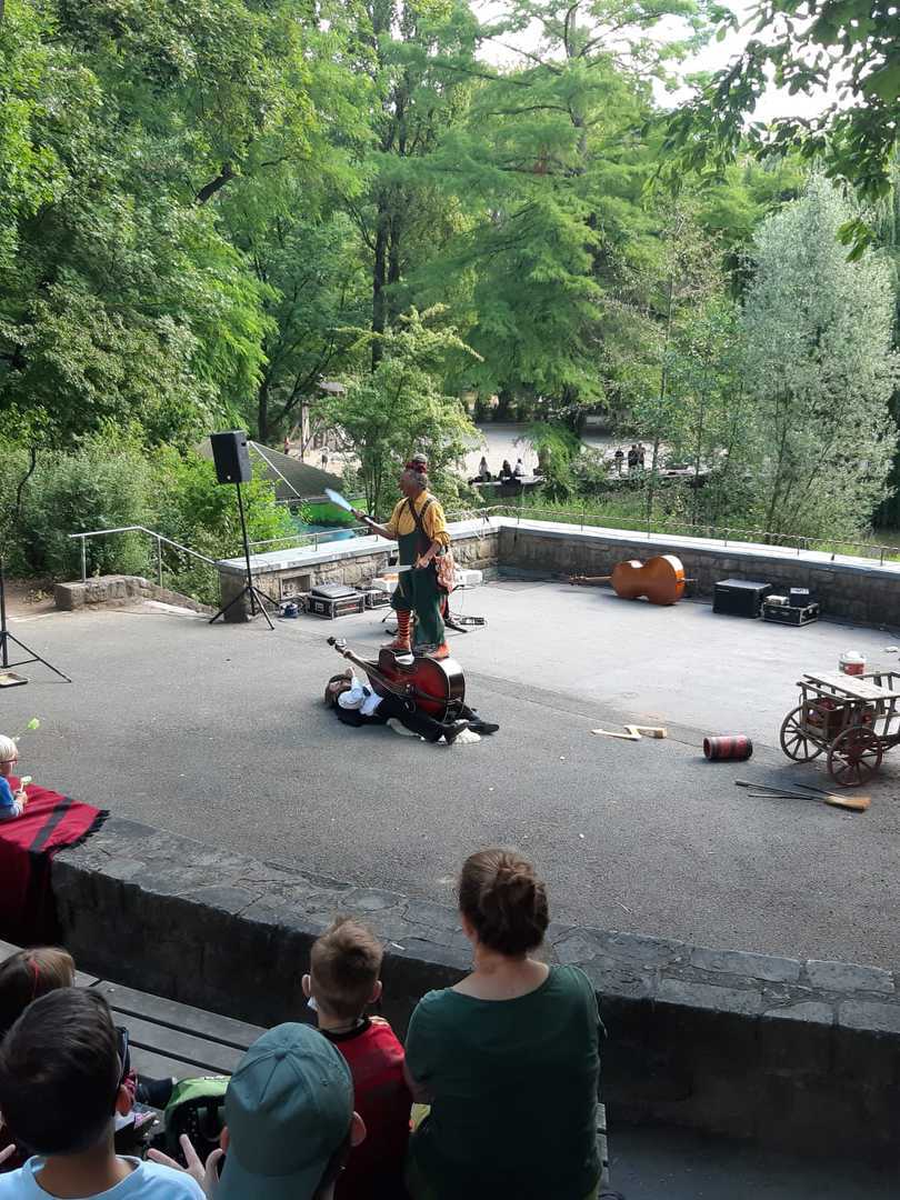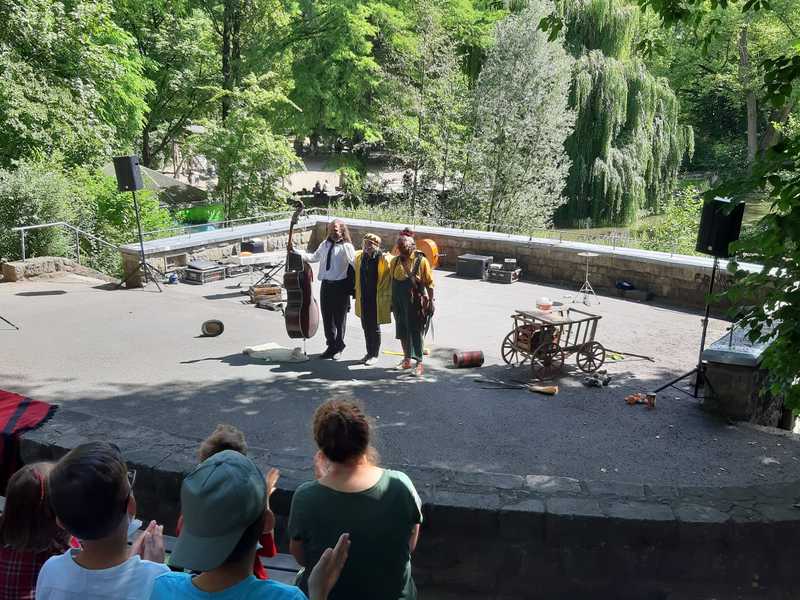 Das Theater war toll! Ein Zauberer wollte den Wald zerstören aber der Kobold hat den Wald gerettet mit der Hilfe von der Fee.