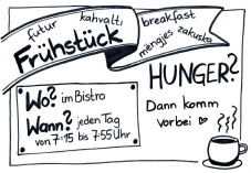 Jeden Morgen vor Unterrichtsbeginn kann im Bistro umsonst gefrühstückt werden! Die Mitarbeiterinnen freuen sich, wenn viele Kinder und Jugendliche kommen und etwas essen oder auch nur etwas trinken!