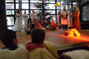 Am letzten Schultag vor den Weihnachtsferien wurde von ausgewählten Schülern der ersten bis dritten Klassen das Krippenspiel aufgeführt. Von den Schafen, über die Engel, Hirten und Heiligen 3 Könige bis zu Maria und Josef präsentierten alle kleinen Darsteller die Weihnachtsgeschichte. Dafür haben sie in den Wochen zuvor fleißig ihren Text geübt und das Theaterstück gemeinsam einstudiert.