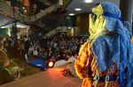Begleitet wurden sie dabei von unserem Unterstufenchor. Die mehr als 30 Sänger haben nach jeder Szene ein dazu passendes Lied als Übergang zur nächsten Szene gesungen. Dabei trugen alle ganz profihaft einheitliche schwarze T-Shirt und goldene Schals. Das sah echt klasse aus. Die Zuschauer konnten diese tolle Veranstaltung diesmal noch besser verfolgen, da wir nach einer Bühne nun auch eine professionelle Anlage besitzen, welche die Lautstärke der Schauspieler an den einzelnen Positionen und des Chor verstärkt.