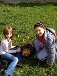 Zunächst sammelten die Kinder am 1. Tag schöne gelbe Löwenzahnblüten. Über Nacht konnten diese etwas trocknen und am nächsten Tag weiterverarbeitet werden.