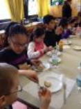 Die Schüler erklärten nochmal den Herstellungsprozess und die verwendeten Zutaten, bevor sich jeder ein Butterbrot mit Löwenzahn-Gelee bestreichen konnte.