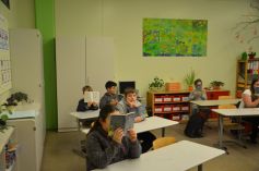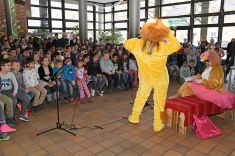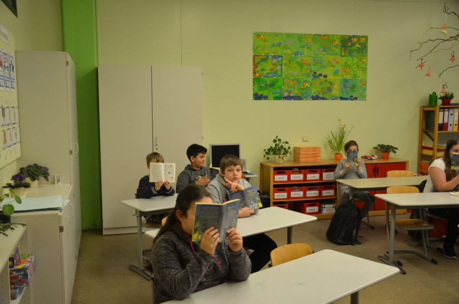 Es begann um 8.15 Uhr ein Theaterstück mit einem Löwen, einer Löwin, einem Vogel und einem Gorilla. Der Löwe verliebte sich in die Löwin aber er konnte leider nicht lesen. Ende des Theaterstücks war um 8.30 Uhr. Alle Kinder waren von 8.30 bis 11.00 Uhr in verschiedenen Workshops. Zum Schluss ging jedes Kind in sein Klassenzimmer. Die Kinder füllten einen Wunschzettel aus wo sie gerne nochmal wären.
