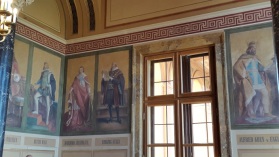 Dort sitzen dann unsere Minister. Zum Beispiel ist dort der Herr Söder, unser Ministerpräsident. Wir dachten, dass er bestimmt ganz oben sitzt. Aber das stimmt nicht. Frau Aigner, die Landtagspräsidentin, sitzt ganz oben. Neben Herrn Söder sitzen dann alle Minister. Also auch der Minister, der für die Schulen zuständig ist, Herr Piazolo, der Kultusminister.