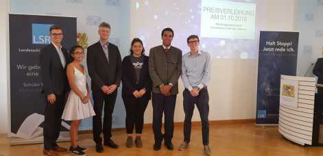Im Kultusministerium war dann die Preisverleihung. Meine Kolleginnen und Kollegen vom Landesschülerrat haben immer erst eine Laudatio gehalten. Was das bedeutet? Das heißt, sie haben allen anderen Schulen und den Ehrengästen erzählt, welches Projekt die Siegerschule zum Thema „#Schulgemeinschaft – zusammen sind wir stärker“ gemacht haben und warum es ausgezeichnet wurde. Dann haben die Siegerschulen noch einen Scheck über 500 Euro bekommen.