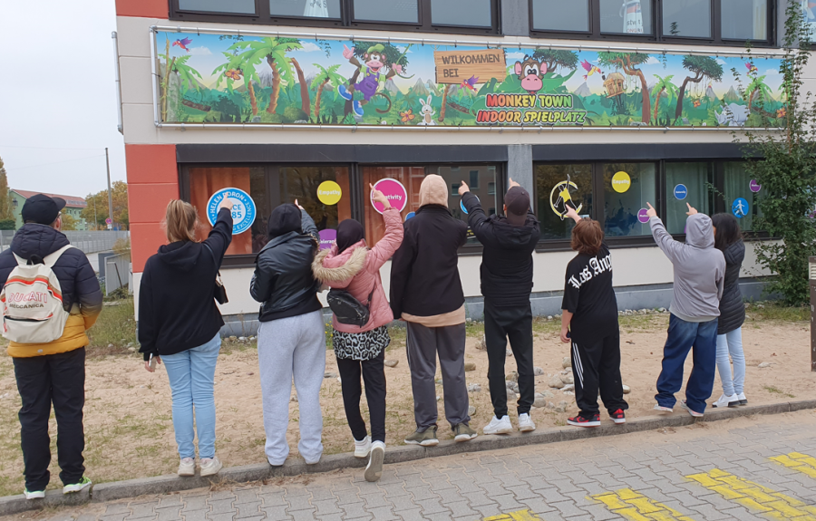 Wir sammelten uns im Klassenzimmer, checkten die Ausrüstung und bewegten uns Richtung Ubahn. Nach einer halben Stunde waren wir auch schon in Fürth, liefen zehn Minuten und kamen pünktlich zur Öffnungszeit um 9 Uhr am „Monkey Town“ an.