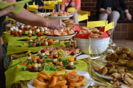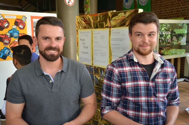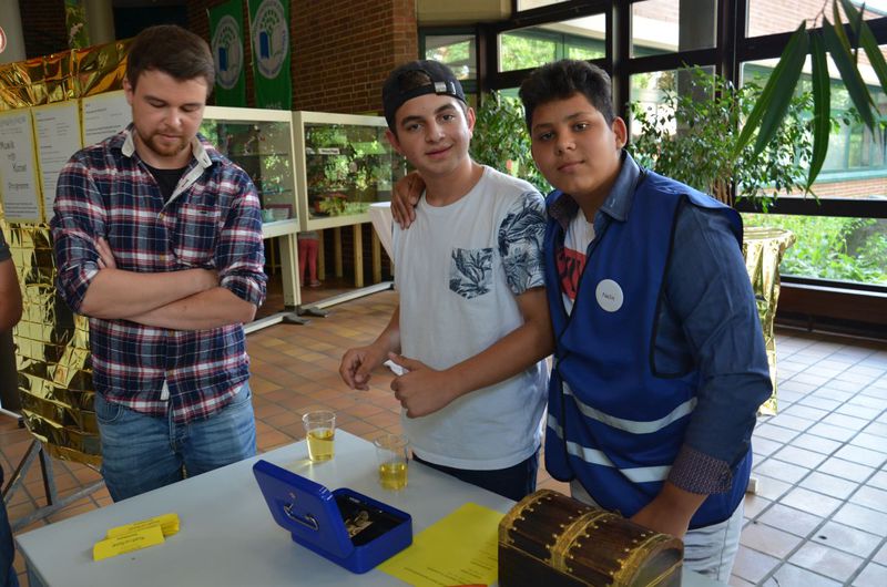 Während dem lockeren Beginn in der Aula, bei dem man die unter der Anleitung von Frau Kuhlenbach und Frau Fuhrmann von den Schülern gezauberten Fingerfoods und die alkoholfreien Cocktails der Klasse von Frau Seewald kosten konnte, gab es bereits erste Kunstwerke der Schüler zu sehen. Die Einlasskontrolle und den Verkauf von Tickets an der Abendkasse übernahmen die Klassensprecher. Auch sammelten sie Spenden unter dem Publikum.