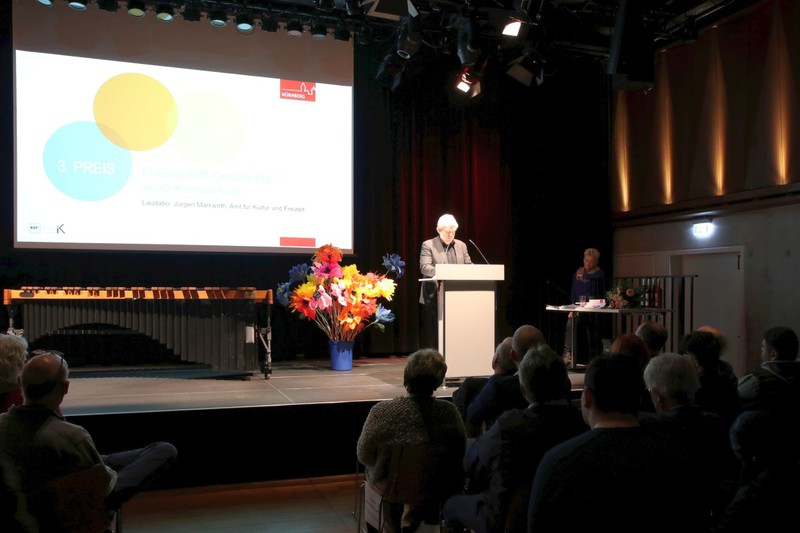 Bei der Präsentation des Projekts im Rahmen des Jenö-Konrad-Cup in der Turnhalle des FCN wurde die Kooperation bereits ausgezeichnet. Die Jury des Paula-Maurer-Preises fand das kluge, inhaltsreiche Konzept ebenfalls preiswürdig und vergibt an „Fußball trifft auf Geschichte – Jenö-Konrad-Preis“ den dritten Paula-Maurer-Preis! Das Projekt ist ein herausragendes Beispiel, wie mit Blick auf die Lebenswelt der Kinder und Jugendlichen und einer klaren Botschaft das Bewusstsein gegen Rassismus und Fremdenhass gestärkt werden kann. Aus Fußball und Geschichte ist eine runde Sache geworden – und damit landen die Beteiligten des Sonderpädagogischen Förderzentrums Jean-Paul-Platz, des 1. FC Nürnberg und des TSV Maccabi einen Volltreffer!