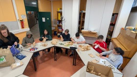 Wir haben 250 Tüten verpackt, in jeder Tüte sollte das gleiche sein. Zum Schluss haben wir die Tüten mit einem Sticker zu geklebt.