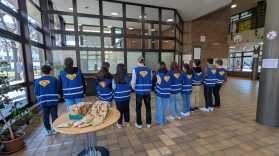 Am 20.3. haben wir die Tüten an die Kinder verteilt und haben ihnen „Eid mubarak!“, „Eid kaarem!“ oder „Frohen Ramadan!“ gewünscht. Wir haben die Tüten am Haupteingang verteilt. Die Klassensprecher haben die Aufgaben untereinander aufgeteilt, einige haben die Tüten verteilt, jemand hat die Tür aufgehalten und draußen wurde Müll gleich eingesammelt. In der Woche vor der Ramadan Aktion haben wir eine Probe gemacht und alles ausprobiert, damit nichts schief geht.