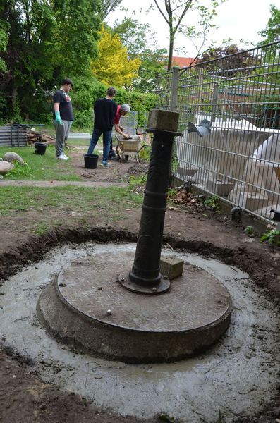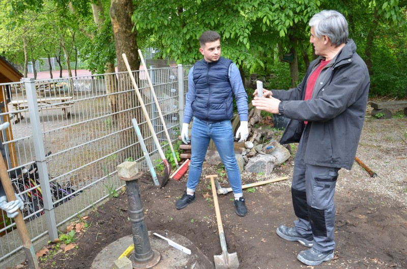 Patrick: Und wir waren bei einem, der uns gezeigt hat, wie man Beton macht und wie man es benutzen kann. Er war sehr cool drauf, finde ich zumindest. Wir mussten für unseren Brunnen Steine ausgraben und auch wegbringen mit einer Schubkarre. Wir mussten die Sachen transportieren, am Ende des Tages haben wir in einer kleinen Runde uns gegenseitig erzählt, was uns gefallen hat und was eher nicht. Aber es war sehr schön auf der Baustelle zu arbeiten.