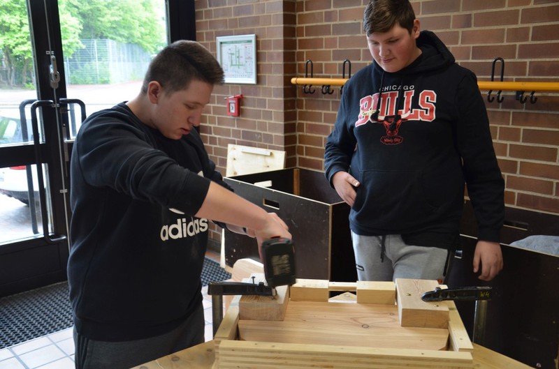 In den nächsten 3 Wochen bauen die Schüler der Klassen 5 bis 9 mit Meistern der Handwerkskammer unter anderem Sitzgelegenheiten oder eine neue, natürliche Filteranlage für den Gartenteich. Außerdem gestalten die Jugendlichen zusammen mit Künstlern verschiedene Kunstwerke für den Pausenhof. Ihr könnt hier nun laufend neue Bilder von den Projekten sehen.