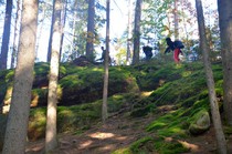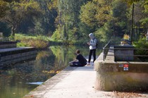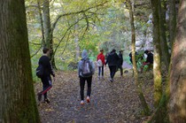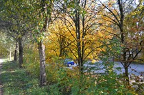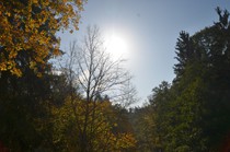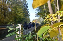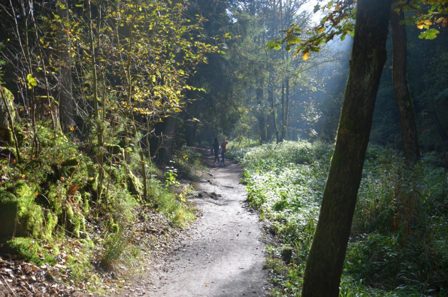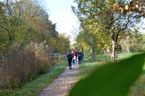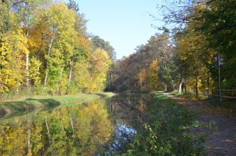 Dann sind wir an einem Becken vom Alten Kanal entlanggelaufen. Da haben die Bäume sich im Wasser gespiegelt und dann noch mit den Blättern die überall am Boden lagen. Danach kamen wir an eine Kreuzung vor bei der konnten wir uns aussuchen, wo wir hin gehen wollten. Den langen Weg nach Feucht zur S-Bahn oder den kürzeren weiter am Ludwigs-Kanal nach Röthenbach. Ich glaube der lange war so 4,5 km und der kürze 4,1km lang. Dann sind wir den Weg mit den 4,1km gelaufen, da hatten wir auch noch Spaß.
