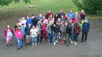 übernachtet. Weil es geregnet hat, sind wir am Donnerstag früh mit dem Bus wieder zurück gefahren. Im Schullandheim hatten wir drei Teamer, die alle Aktionen für uns geplant haben. Sie waren sehr