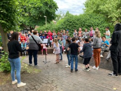 Im Rahmen des Projektes der 9. Klassen zum Thema Antisemitismus besuchte Dr. Ludwig Spaenle (MdL und Staatsminister a.D.) in seiner Funktion als Antisemitismusbeauftragter der bayr. Staatsregierung unsere Schule. Einen herzlichen Empfang bereitete ihm der Chor unserer DFK vor der Schule mit einigen Liedern.