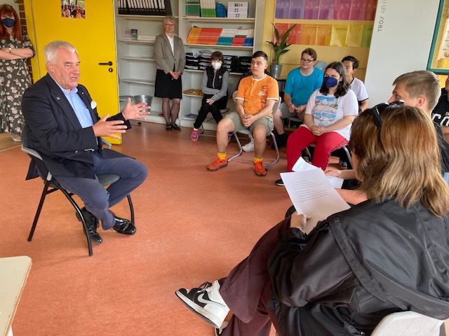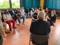 Leonie und Deryagül führten das interessante Interview und stellten ihm viele Fragen zu seiner Funktion als Beauftragter für Antisemitismus und seinen Erfahrungen. Sehr offen und authentisch beantwortete Dr. Spaenle alle Fragen und oft stellte sich große Betroffenheit und erschüttertes Schweigen bei seinen Schilderungen ein.
