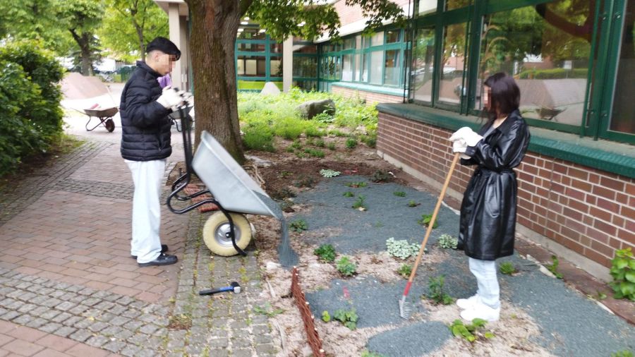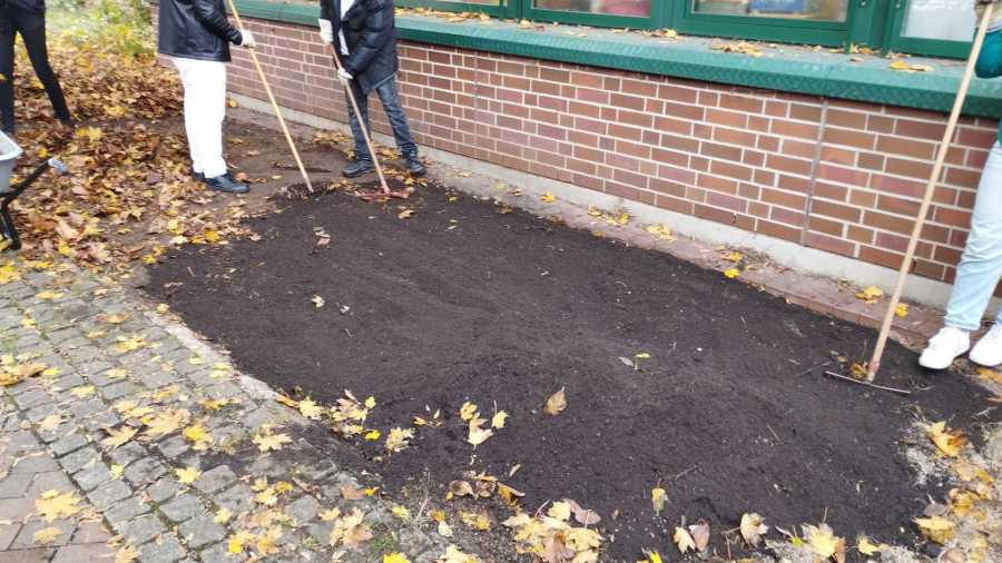 Wir wollten deshalb das Staudenbeet vor unserer Schule vergrößern.