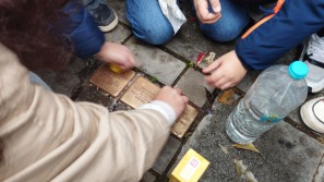 Am Montag, den 11. November 2024, putzten wir vor den Häusern der Rankestraße 68 und der Lohengrinstraße 13 Stolpersteine. Wir machten dies mit Salz, einer aufgeschnittenen Zitrone und Wasser. Wir