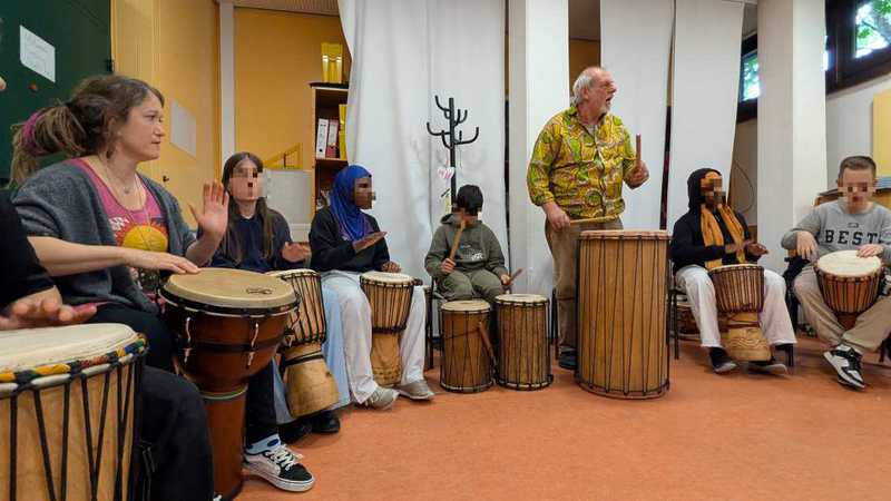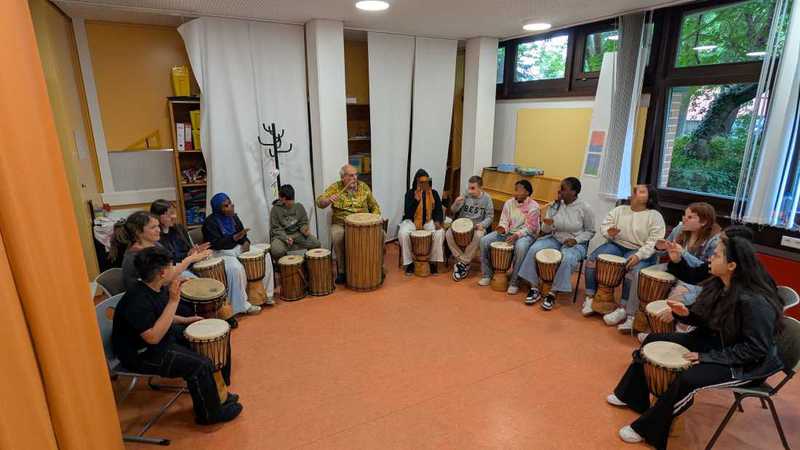 Schule Djemben gekauft werden, sowie ein Trommelkurs organisiert werden.