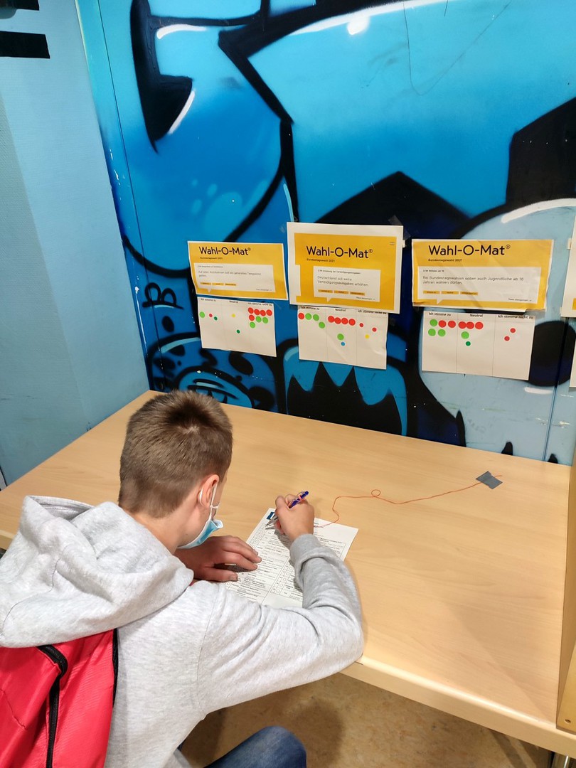 Am Freitag, 17.9.21, gingen die Klassen 7 - 9 nach Gostenhof zu unserem Wahllokal. Einige Klassen gingen wirklich zu Fuß dahin. Respekt! Unser Wahllokal war im Jugendzentrum Gost. Dort angekommen durften immer 3 Schüler in den Wahlraum.