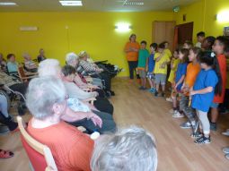 Wir haben extra Lieder ausgesucht, die die Bewohner noch von früher kennen. Das hat ihnen gut gefallen. Bei manchen Liedern konnten sie sogar mitmachen. Sie haben uns sogar um eine Zugabe gebeten. Das war ein schöner Erfolg. Toll! Es macht Spaß jemandem eine Freude zu machen. Als Belohnung haben wir dann sogar Gummibärchen bekommen!!!