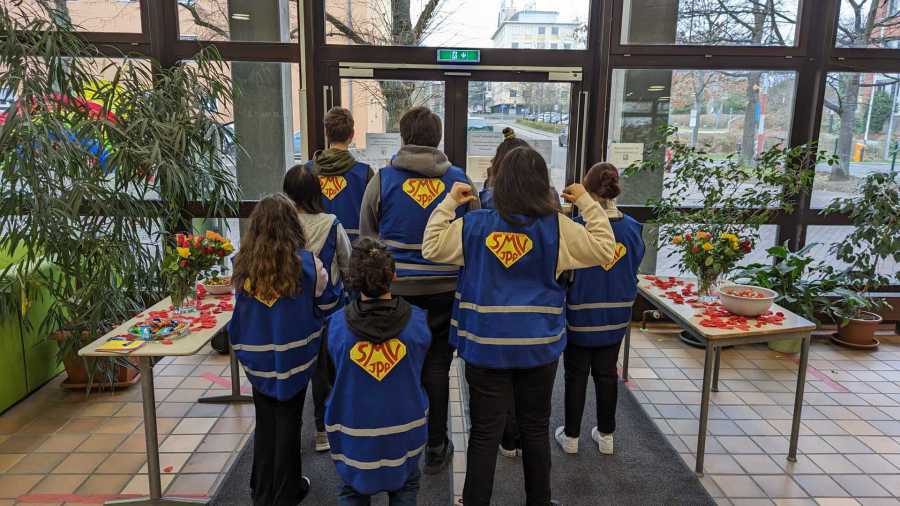 Anstatt wie jedes Jahr Rosen an die Schulfamilie zu verteilen, hatten die Klassensprecher und Klassensprecherinnen die Idee, das Geld anderweitig zu verwenden:
