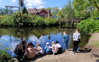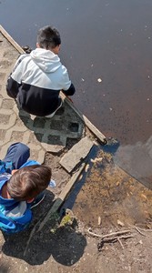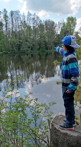 Zuerst sind wir mit dem Bus gefahren zum Valznerweiher. Dann sind wir zur ersten Station gelaufen. Jeder hat sich einen kleinen Schüler aus der ersten Klasse von Frau Rösch ausgesucht. Jedes Mal, wenn ich einen Käfer gesehen habe, habe ich Leon Bescheid gesagt und er hat sie immer mit seinem Becherglas gefangen. Dann haben wir immer an einer Station angehalten: Wir haben zum Beispiel die Jahresringe der Bäume gezählt oder sind auf den Barfußfad gelaufen. Auch haben wir immer nach Tier-Skulpturen geschaut und haben schließlich das Wandern beendet. Als Belohnung durften wir auf den Spielplatz.