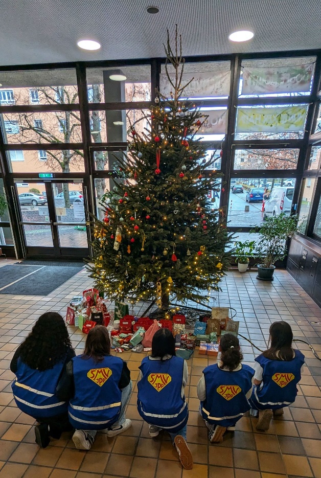 In der letzten Woche vor den Ferien haben wir eine Wichtelaktion gemacht. Die Kinder mussten ein Wichtelgeschenk für ein anderes Kind kaufen und mit in die Schule bringen. Wir haben alle Geschenke unter den Weihnachtsbaum in der Aula gelegt. Alle Kinder, die mitgemacht haben, sind in die Aula gekommen und haben die Geschenke von der SMV überreicht bekommen. Wir haben den Schülerinnen und Schülern „Fröhliche Weihnachten!“ gewünscht. Die Kinder waren glücklich mit ihren Geschenken. Es war schön für uns alle.