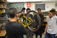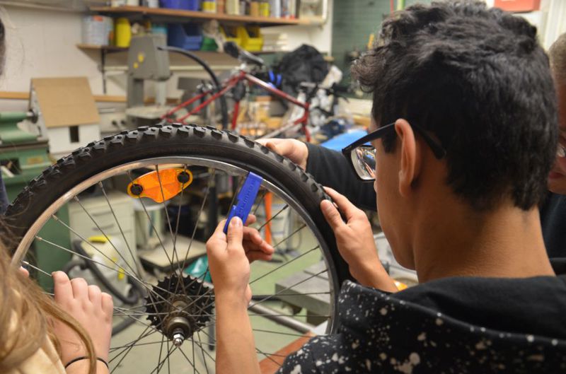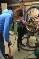 Zum Abschluss konnten die Schüler die reparierten Laufräder auf verschiedene Arten wieder eingebauen (mit dem Schraubschlüssel oder dem Schnellspanner, mit oder ohne Hollandschaltung) und aufgepumpen. Danach zeigte Herr Aumüller den Mädchen und Jungen, wie die Bremsen, die Schaltung und die Ketten ausgetauscht oder einstellt werden. Nach einer anschließenden Probefahrt über den Pausenhof wurden die Fahrräder wieder im Gartenhäuschen der GTB verstaut.